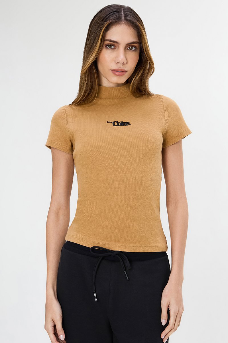 A Blusa Canelada Coke é feita em malha canelada de algodão com stretch, garantindo caimento preciso e conforto ao corpo. Com gola alta, manga curta e shape justo, a peça valoriza a silhueta com elegância. O bordado frontal “Coke” finaliza o design com autenticidade e assinatura da marca.