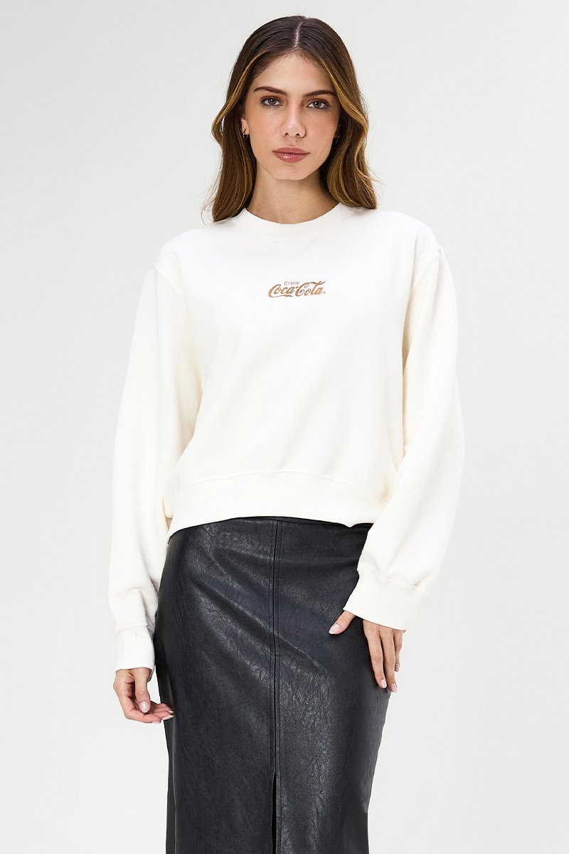 Confeccionado em moletom macio e confortável, o Blusão Feminino Love Heart Coca-Cola combina estilo moderno e conforto diário com modelagem comfy. Possui mangas longas, decote careca, gola e punhos em ribana, garantindo ajuste perfeito e praticidade. O destaque fica por conta da estampa frontal Coca-Cola em foil, que adiciona brilho e autenticidade à peça.