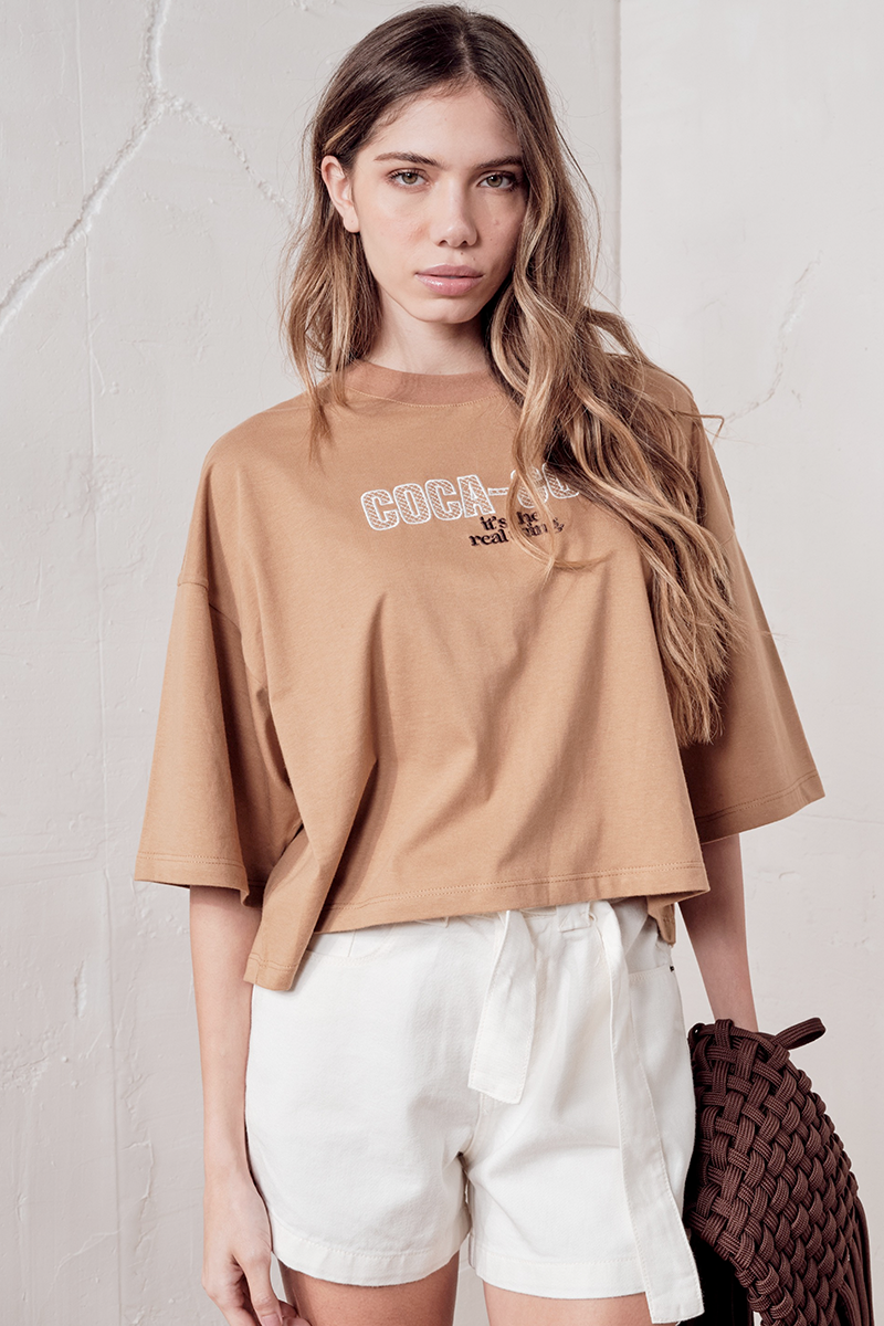 A Camiseta Coca-Cola Jeans Oversized é perfeita para quem quer criar looks icônicos com atitude moderna. Com modelagem oversized e comprimento cropped, oferece conforto máximo e liberdade de movimento para o dia a dia. Confeccionada em malha de algodão leve e macia, garante toque agradável e durabilidade. O design inclui mangas curtas amplas e decote redondo, combinando estilo e praticidade. O destaque da peça é o bordado frontal Coca-Cola em tela, acompanhado da frase "It’s the real thing", que reforça a autenticidade e espírito icônico da marca. Versátil, pode ser combinada com jeans, calças jogger ou saias de cintura alta, criando looks descontraídos ou urbanos com personalidade.