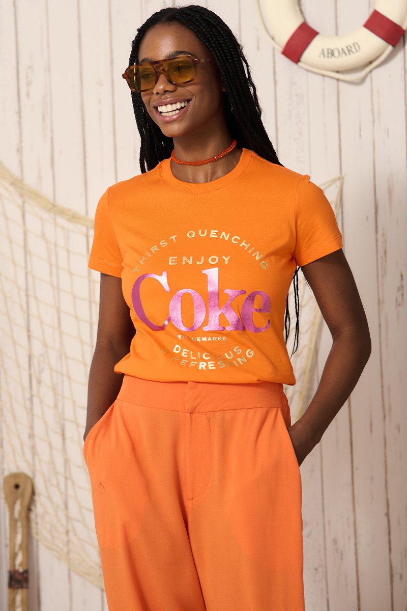 A Camiseta Baby Look Shine Coca-Cola é confeccionada em malha penteada 30/01 de 100% algodão BCI, oferecendo toque macio, conforto térmico e excelente ajuste ao corpo. Possui modelagem baby look, que valoriza a silhueta com caimento mais ajustado. O modelo conta com mangas curtas e decote redondo em ribana, garantindo melhor acabamento e conforto no uso. Apresenta etiqueta bandeira Coca-Cola aplicada na lateral, estampa “C” no decote das costas e estampa frontal em foil com logo “Coke” e lettering, que adiciona brilho e reforça a identidade icônica da marca. A T-Shirt Baby Look Coca-Cola é uma peça casual e versátil, ideal para combinações com jeans, saias ou shorts, adaptando-se facilmente a diferentes propostas de look. A Baby Look Feminina Coca-Cola une conforto e estilo, sendo perfeita para o dia a dia com um toque moderno e feminino.