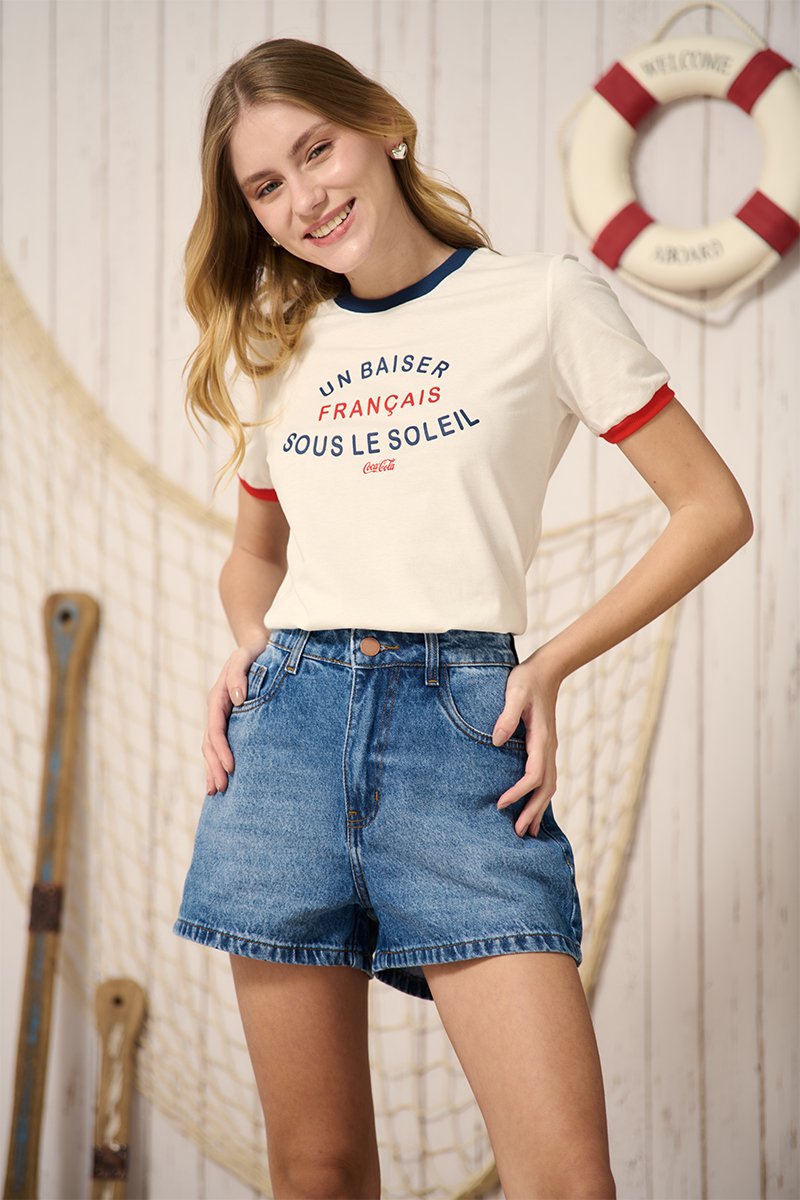 A Camiseta Un Baiser Coca-Cola Jeans aposta em uma estética autoral e sofisticada, inspirada no mood francês e no lifestyle urbano contemporâneo. O destaque da peça fica por conta da estampa frontal em lettering “Un Kaiser Français Sous Le Soleil”, que traz um visual artístico, conceitual e cheio de personalidade. Confeccionada em malha penteada 30/1, a camiseta entrega maciez superior, estrutura firme e conforto térmico, ideal para o uso diário. Desenvolvida em 100% Algodão BCI (Better Cotton Initiative), reflete o cuidado da marca com processos mais responsáveis e sustentáveis. O modelo apresenta manga curta e decote redondo em ribana contrastante, criando um ponto de cor que valoriza o design e adiciona um toque moderno à peça. Como assinatura final, a letra “C” aplicada no decote das costas reforça a identidade Coca-Cola Jeans de forma sutil e exclusiva.