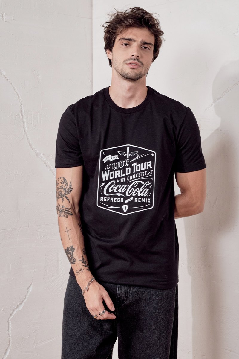 A energia dos festivais agora em versão fashion. Feita em malha penteada 30/1, com algodão BCI (Better Cotton Initiative) que garante uma produção mais responsável e sustentável, essa camiseta une conforto, estilo e consciência. Com modelagem comfort, mangas curtas e decote redondo, ela traz uma estampa frontal exclusiva Mixtape, inspirada no encontro entre moda e música, traduzindo toda a atitude e autenticidade da Coca-Cola Jeans.