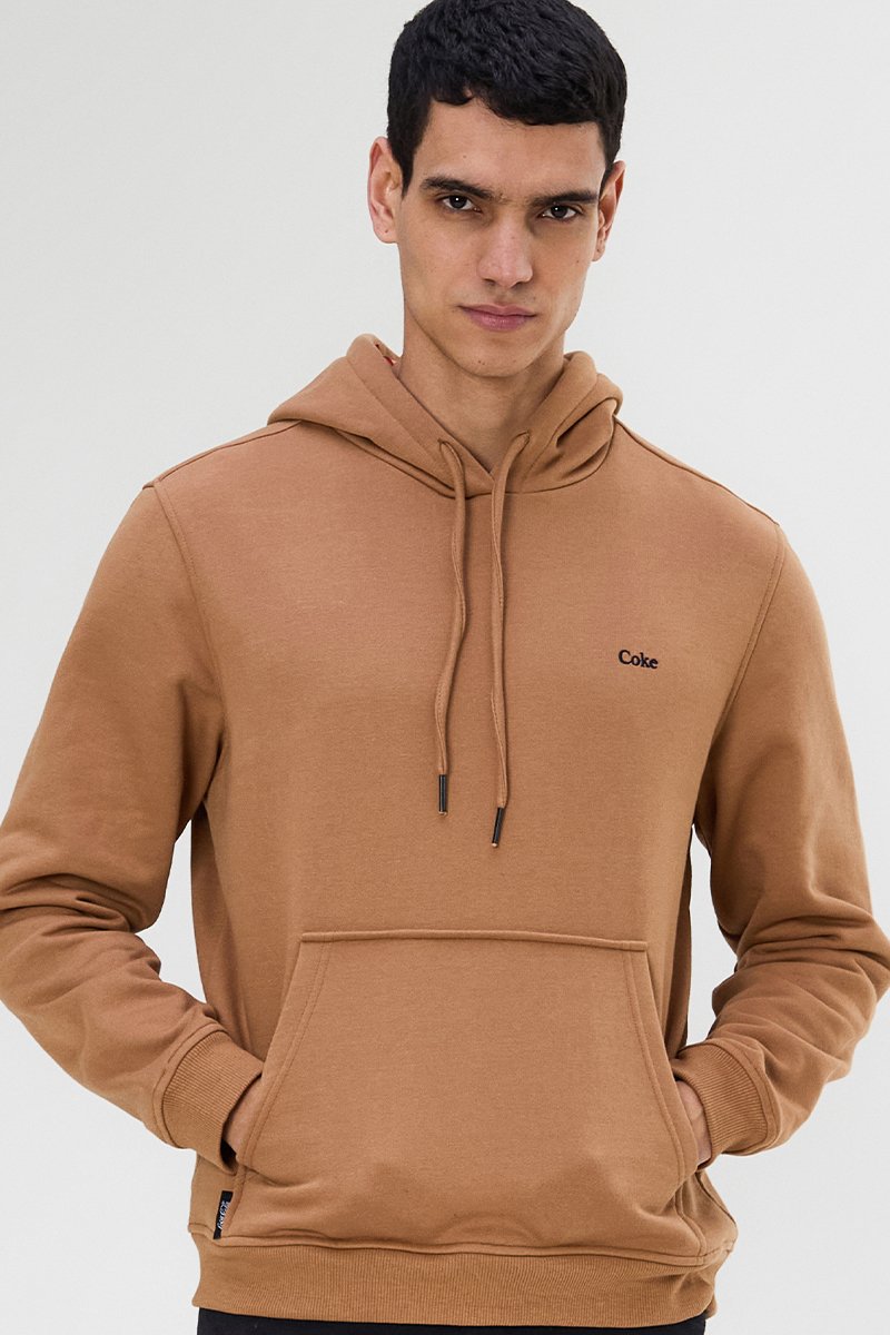 Confeccionado em moletom macio, este casaco com capuz combina conforto e estilo urbano. O design minimalista ganha destaque com o bordado Coke no peito e o bordado Bottle acima do punho, adicionando autenticidade à peça. Possui modelagem comfort, capuz com cadarço regulável e bolso canguru funcional, enquanto gola e punhos em ribana garantem ajuste preciso e maior conforto. Ideal para compor looks casuais modernos e cheios de personalidade.