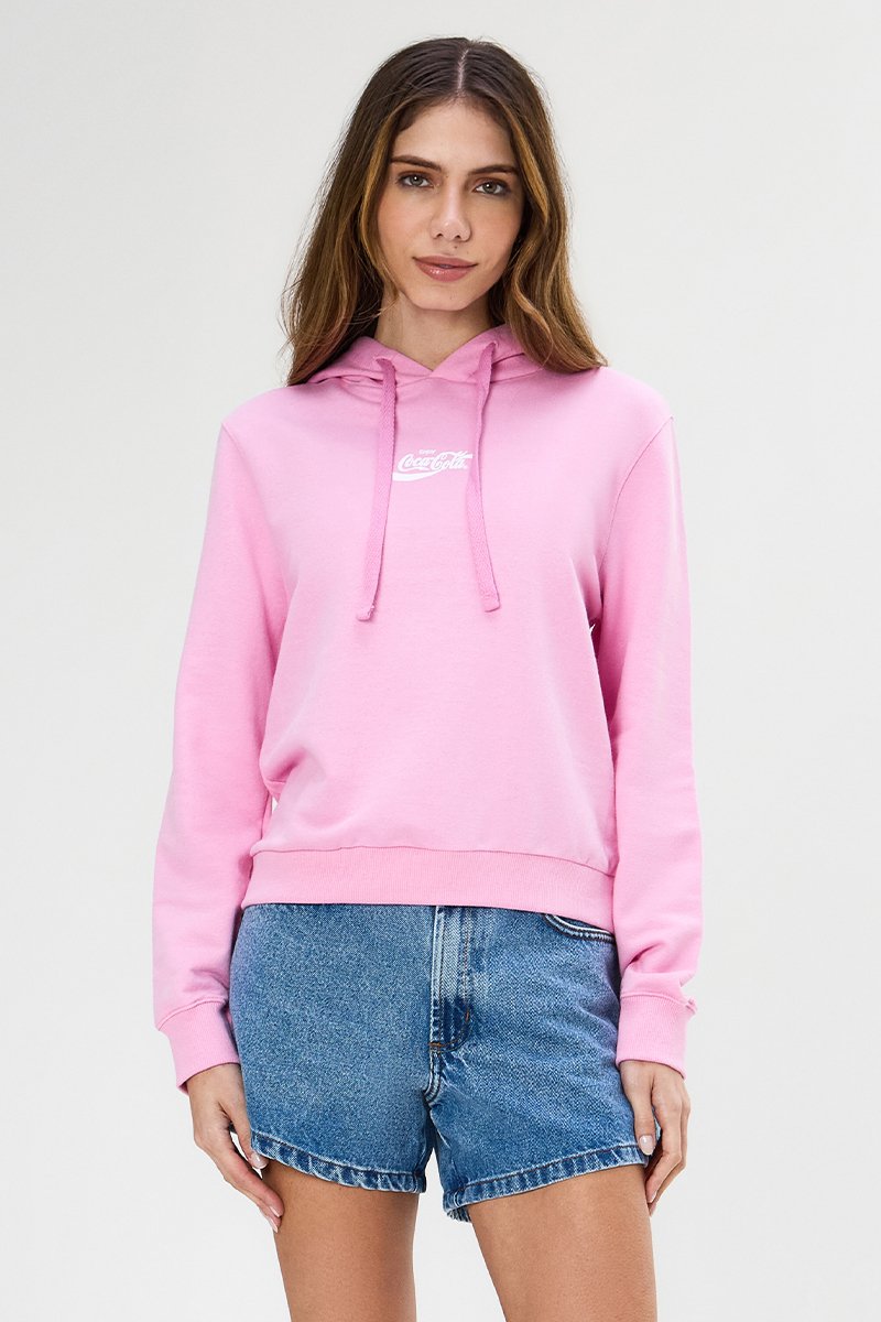 Confeccionado em moletom 100% algodão, este blusão feminino com capuz oferece conforto, maciez e qualidade superior ao toque. Possui mangas longas, decote com capuz e cadarço regulável, além de punhos e barra em retilínea que garantem ajuste preciso. O destaque fica por conta da estampa Coca-Cola no centro do peito, conferindo estilo autêntico e moderno. O Blusão Coca-Cola é perfeito para editar looks casuais com personalidade.