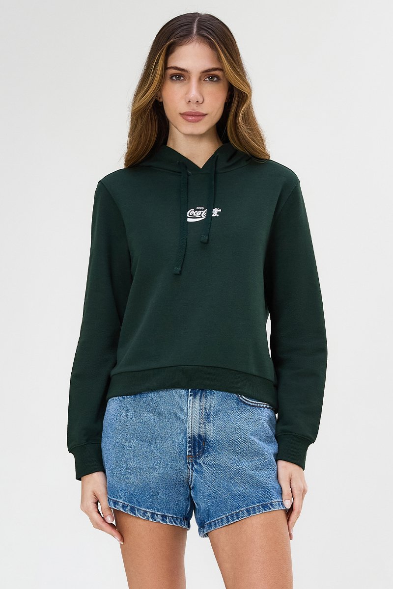 Confeccionado em moletom 100% algodão, este blusão feminino com capuz oferece conforto, maciez e qualidade superior ao toque. Possui mangas longas, decote com capuz e cadarço regulável, além de punhos e barra em retilínea que garantem ajuste preciso. O destaque fica por conta da estampa Coca-Cola no centro do peito, conferindo estilo autêntico e moderno. O Blusão Coca-Cola é perfeito para editar looks casuais com personalidade.
