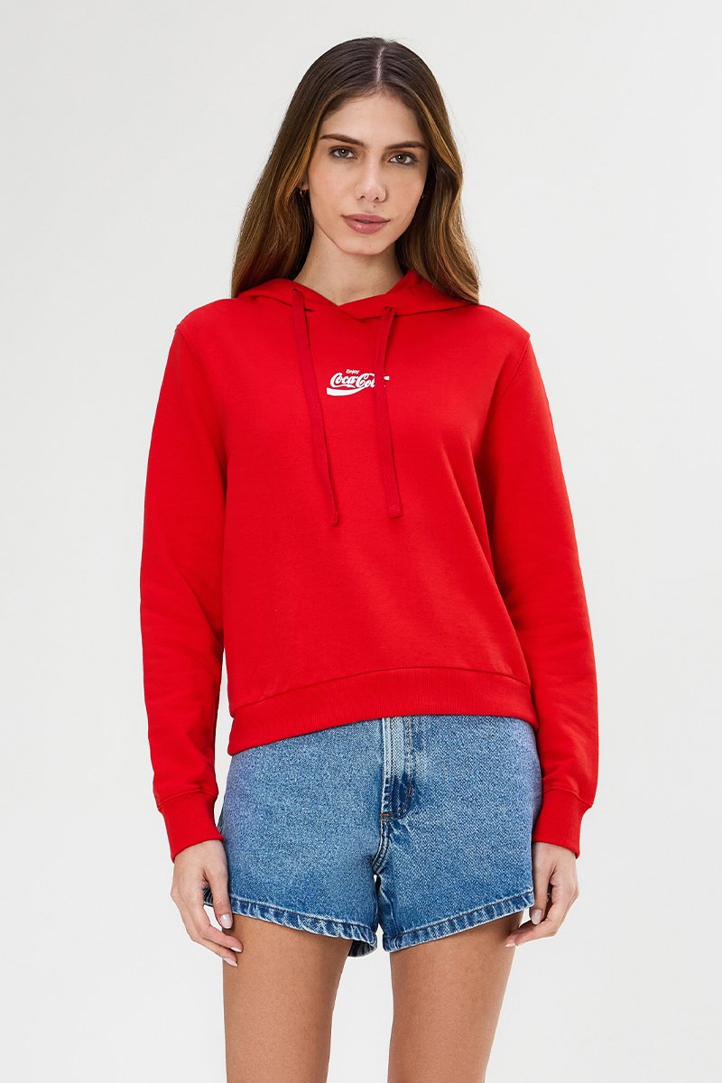 Confeccionado em moletom 100% algodão, este blusão feminino com capuz oferece conforto, maciez e qualidade superior ao toque. Possui mangas longas, decote com capuz e cadarço regulável, além de punhos e barra em retilínea que garantem ajuste preciso. O destaque fica por conta da estampa Coca-Cola no centro do peito, conferindo estilo autêntico e moderno. O Blusão Coca-Cola é perfeito para editar looks casuais com personalidade.
