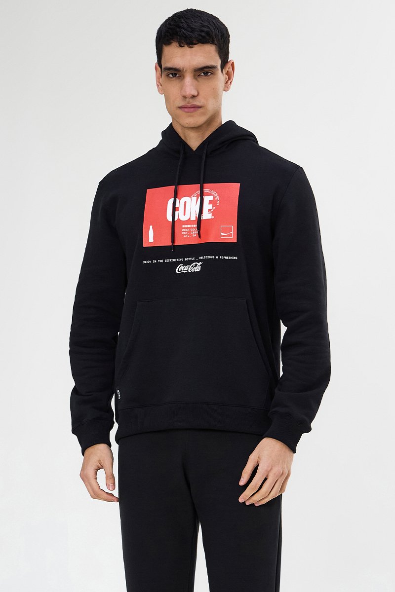 Feito em moletom leve e ultraconfortável, este casaco masculino traz capuz com cadarço para ajuste e bolso canguru funcional. A estampa frontal com o logo COKE e lettering dá um toque urbano e moderno, perfeito para compor looks casuais com autenticidade.