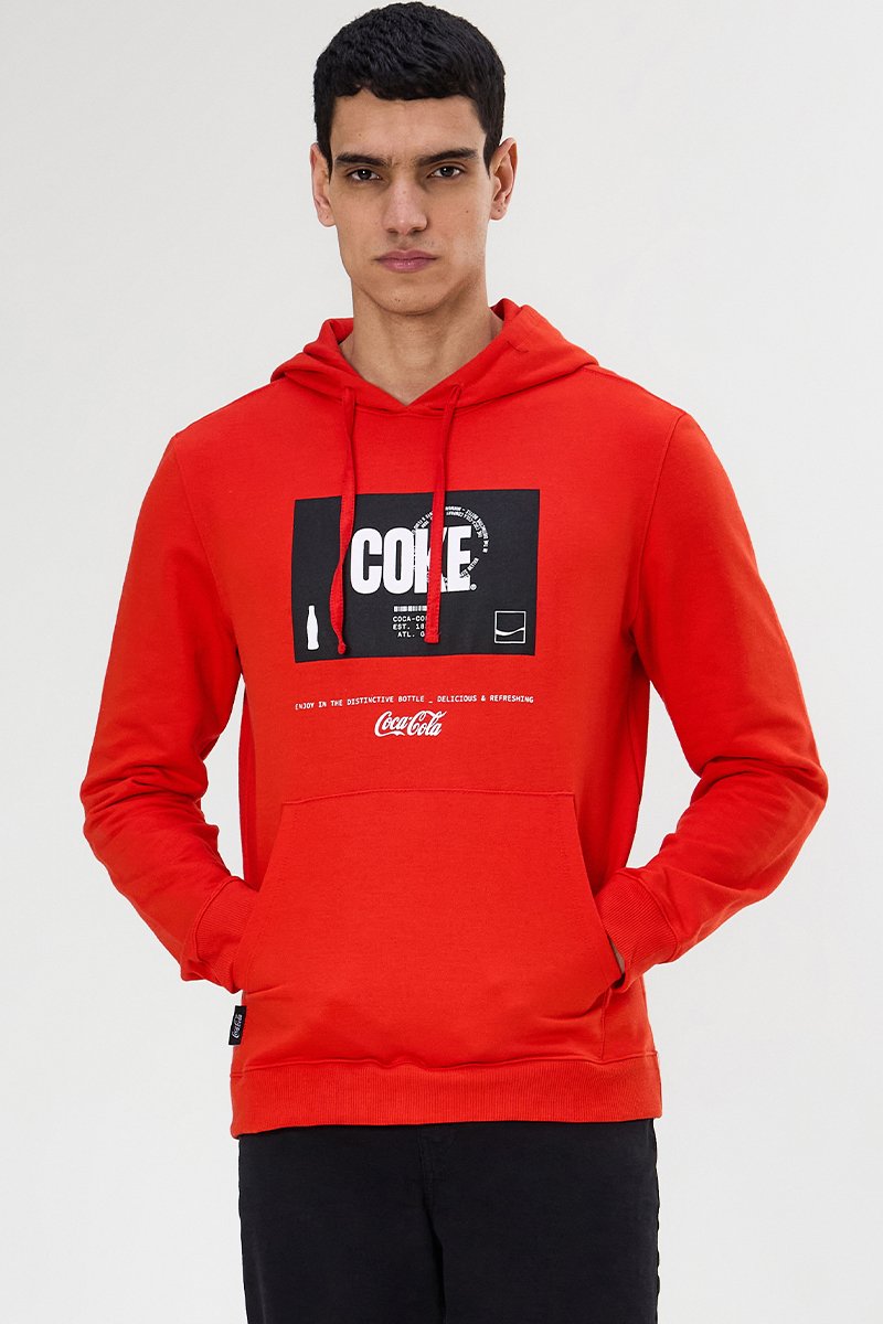 Feito em moletom leve e ultraconfortável, este casaco masculino traz capuz com cadarço para ajuste e bolso canguru funcional. A estampa frontal com o logo COKE e lettering dá um toque urbano e moderno, perfeito para compor looks casuais com autenticidade.