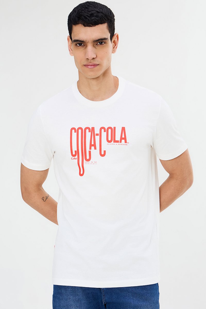 A Camiseta Masculina Coca-Cola une design urbano e qualidade premium. Confeccionada em malha penteada 30/1 de algodão, garante toque macio, resistência e caimento impecável. O destaque fica para a estampa frontal Bauhaus Coca-Cola, que imprime personalidade ao visual. O modelo tem decote redondo em ribana, mangas curtas e etiqueta lateral de assinatura, reforçando a identidade da marca. O algodão utilizado é certificado pela Better Cotton Initiative (BCI), programa internacional que promove cultivo mais responsável, com menor impacto ambiental e incentivo a práticas sustentáveis.