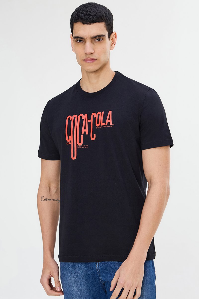 A Camiseta Masculina Coca-Cola une design urbano e qualidade premium. Confeccionada em malha penteada 30/1 de algodão, garante toque macio, resistência e caimento impecável. O destaque fica para a estampa frontal Bauhaus Coca-Cola, que imprime personalidade ao visual. O modelo tem decote redondo em ribana, mangas curtas e etiqueta lateral de assinatura, reforçando a identidade da marca. O algodão utilizado é certificado pela Better Cotton Initiative (BCI), programa internacional que promove cultivo mais responsável, com menor impacto ambiental e incentivo a práticas sustentáveis.