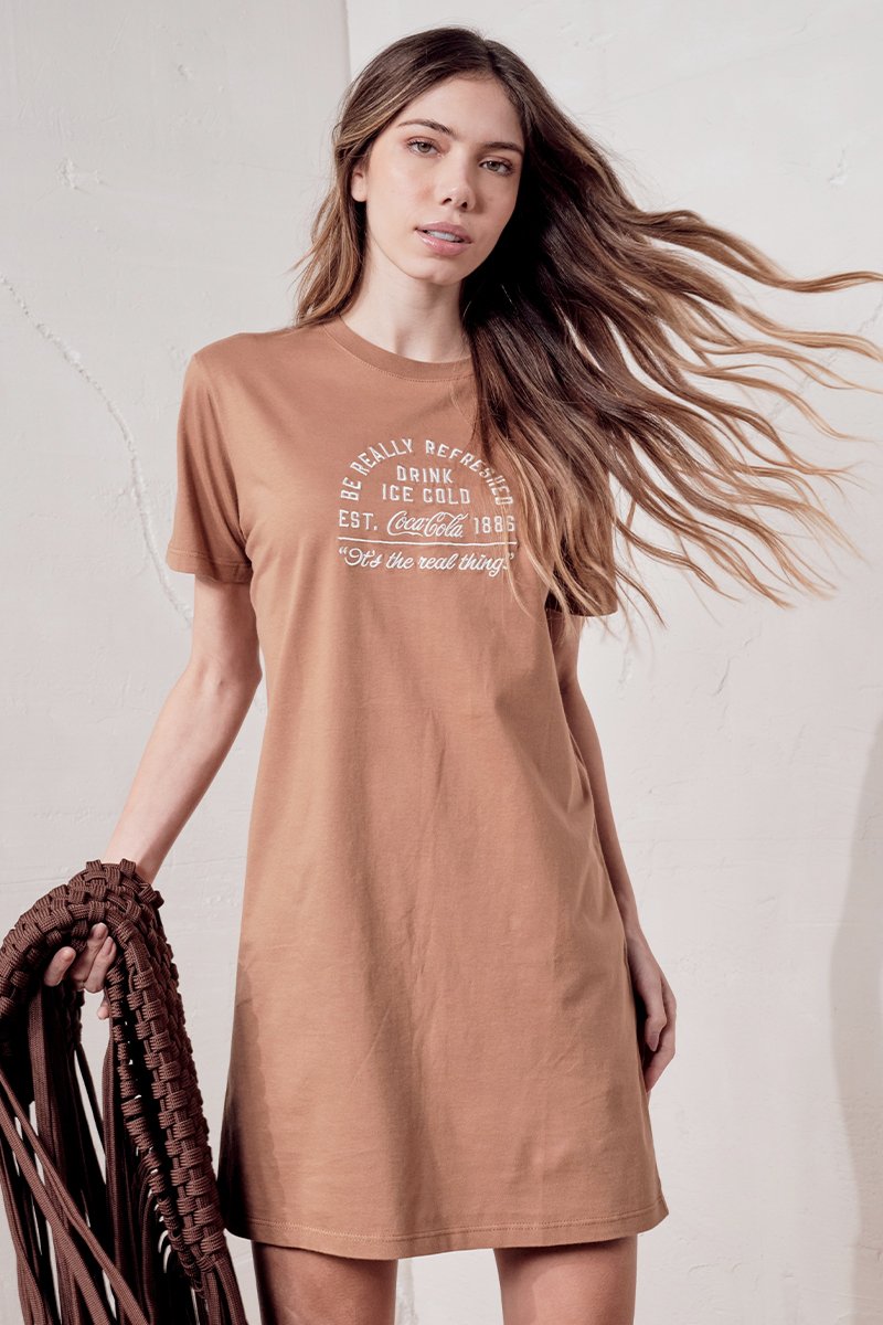O Vestido T-shirt Coca-Cola é a união perfeita de estilo e versatilidade. Desenvolvido em malha fio penteado 30/1 de algodão BCI, proporciona toque macio, caimento uniforme e maior durabilidade. O algodão BCI (Better Cotton Initiative) é cultivado de forma sustentável, com menor consumo de água, práticas agrícolas responsáveis e melhores condições para os produtores. Conta com modelagem Comfort que garante caimento leve, conforto e liberdade de movimentos. O design inclui gola redonda, mangas curtas e comprimento curto, com destaque para o bordado frontal em lettering exclusivo Coca-Cola, que adiciona um toque autêntico e urbano à peça. Aposte com tênis para produções casuais ou combine com botas e acessórios para um resultado moderno e cheio de personalidade.