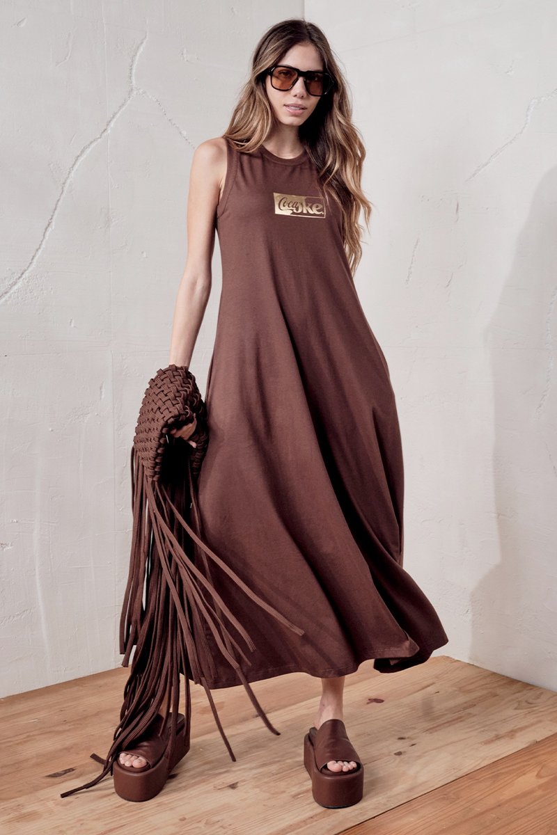 O Vestido Super Midi Coke Foil é a escolha perfeita para unir estilo, conforto e autenticidade em uma peça moderna. Confeccionado em malha fio penteado 30/1 de algodão BCI, cultivado de forma sustentável, que consome menos água e segue práticas agrícolas responsáveis, proporciona toque macio, caimento uniforme e maior durabilidade. Sem manga e com comprimento super midi, garante liberdade de movimentos e visual fresh. O destaque fica por conta da estampa frontal “COKE” em foil, que adiciona brilho, modernidade e personalidade à peça.